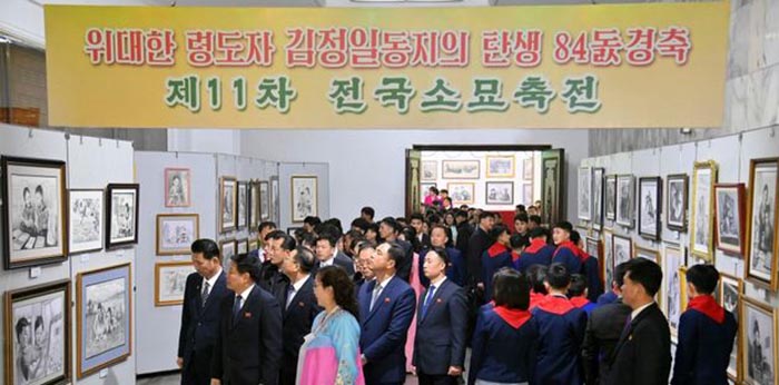 조선장애자예술협회에서 경사스러운 2월의 명절을 맞으며 어버이장군님을 그리는 마음을 안고 위대한 령도자 김정일동지의 탄생 84돐경축 제11차 전국소묘축전에 작품들을 출품하였다.