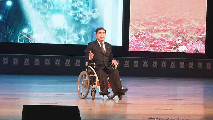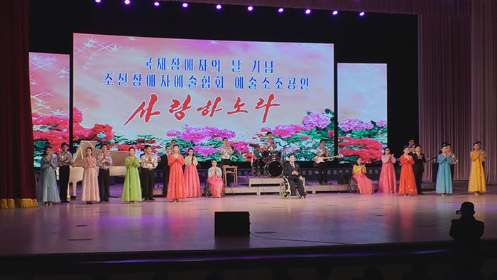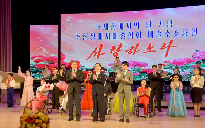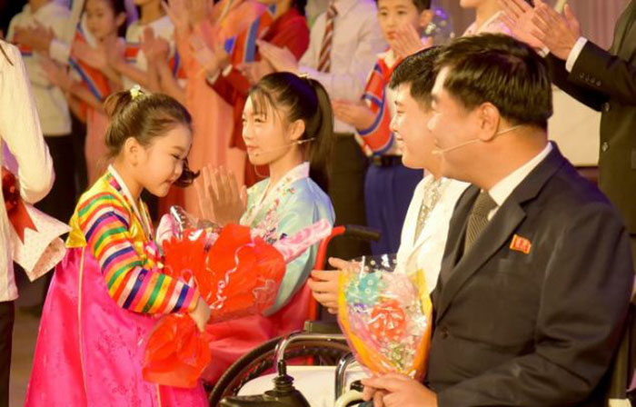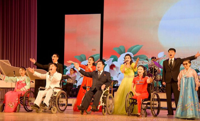 The performance ended with a medley of songs We Call You Father and We Cannot Live Without Him, truthfully portraying the pride and glory of the persons with disabilities living without any cause for envy in the great socialist family led by the respected Comrade Kim Jong Un.