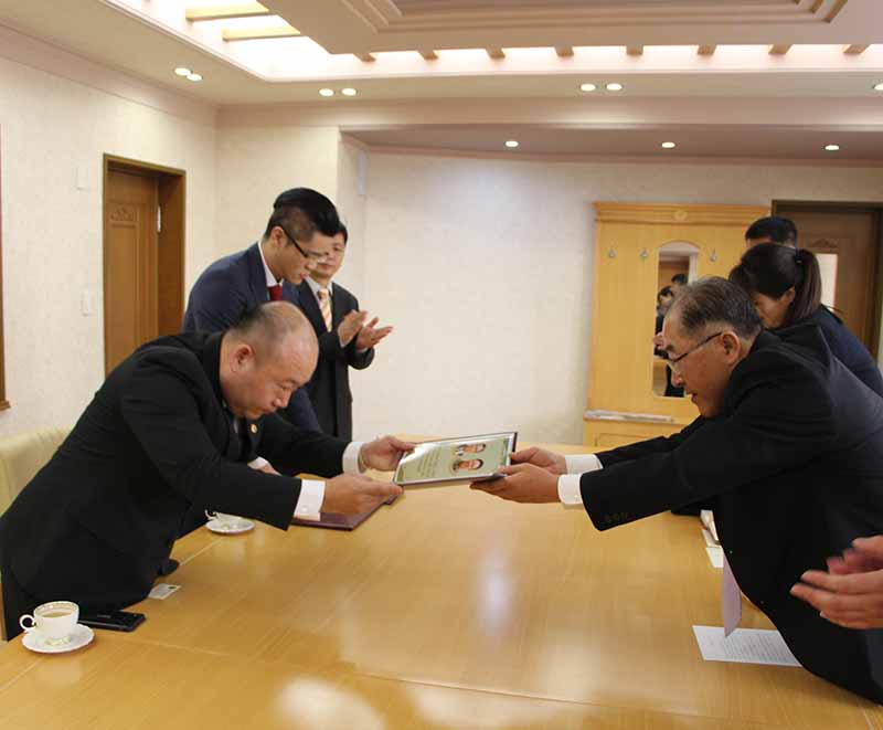 “我被授予金日成金正日基金捐款证书,感到很荣幸。回国后,我要拿着证书跟在我们大学学习的全体朝鲜学生一起合影留念,也给家人和朋友看看。而且,多多宣传金日成金正日基金,尽力协助基金工作。”