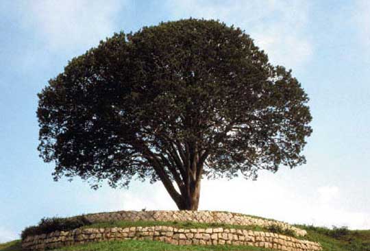 It ramifies into four large branches at the height of two metres with their girths of about 1.8 metres respectively. They spread out more twigs to form an umbelliform crown.