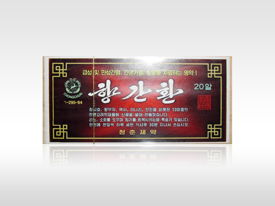 主要成分;茵陈等十多种天然高丽药材。香肝丸能治急性及慢性肝炎、肝硬化、黄疸等,具有降低转氨酶的作用。对肝患者的消化不良、瘫软、食欲不振、胀肚、瘙痒等症状功效。用法用量;一次一片,一日三次,饭后服用。