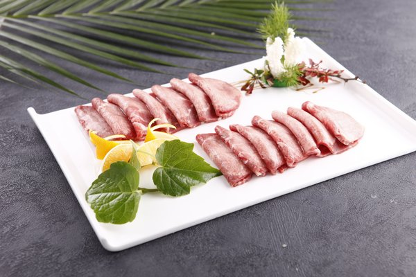 牛舌 350克,糖 10克,酱油 30克,洋葱10克,蒜3克,味精2克,食用油 20克,香油5克,胡椒粉0.2克。