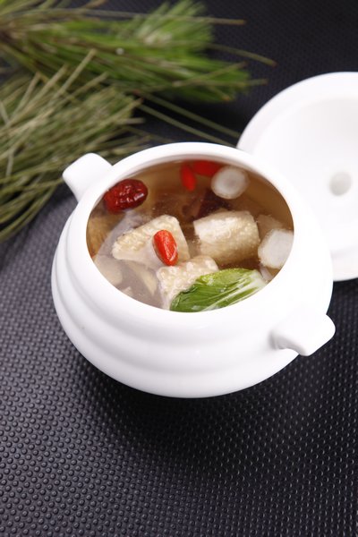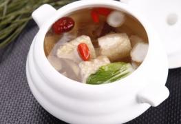 鸽子 70克,白糖 1克,料酒 2克,药材 2克,扇贝干 3克,枸杞子 2克,大枣 1克,党参 1克,龙眼 2克,猪肉 3克,咸猪肉 2克,盐 1克,味精 1克,鸡肉粉 5克。
