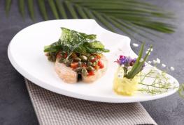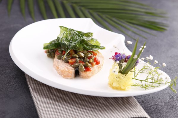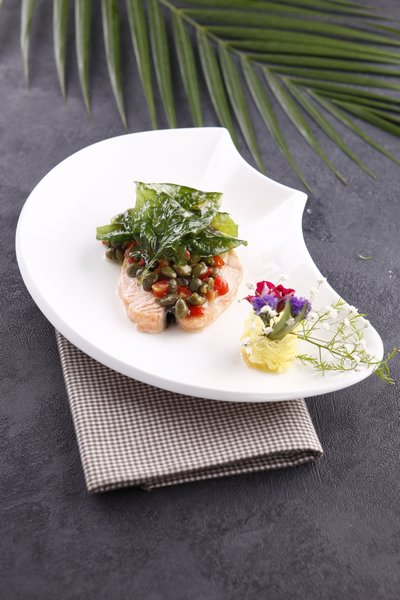 三文鱼的鲜美味道与蔬菜相搭配,相得益彰,美味异常,可适于开胃菜,尤其是幼老皆宜。