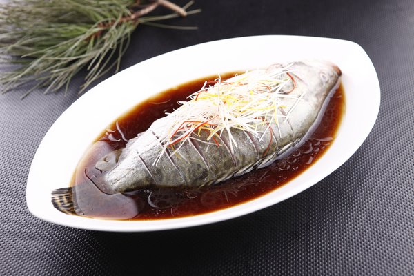 鳜鱼两面剞刀纹,加盐,胡椒粉腌制20分钟,上蒸炉蒸15分钟,葱切成细丝.鱼上面撒上葱丝,将炒好的油100克,淋于其上面,炒出香味来,再浇入清蒸汁上桌。清蒸汁的配方如下。