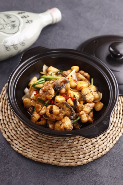 鳗鱼处理干净,切成片,加生姜汁,盐,味精,胡椒粉腌制。蒜,姜用油炸,出锅待用。鳗鱼投入在150℃油温中炸出待用.在炒锅里放入鱼露,蚝油,味精,糖,胡椒粉,葱末,辣椒油煸炒.加入炸的蒜,姜和鳗鱼继续炒,用湿淀粉勾芡上桌。
