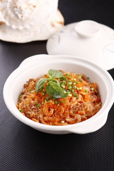 粉丝煮透过水捞出沥干水分,切成7-8厘米长的大小待用。洋葱,泡椒剁细.用油滑锅,放入粉丝,洋葱,泡椒,鱼子酱,煸炒,加味精,糖,辣椒粉,鸡精继续炒,出锅装盘上桌。