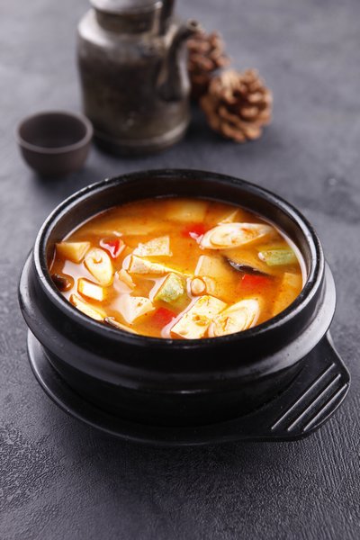 100g potato, 350g water, 10g oil, 1g salt, 18.7g bean paste, 10g welsh, 3g garlic, 1g sesame.