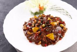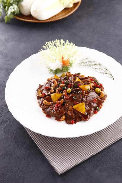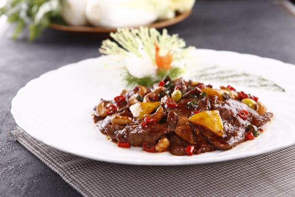 200g venison, 0.2g monosodium glutamate, 10g sugar, 1/2 egg, 5g garlic, small amount of ginger, 10g cibol, 15g ripe red pepper, 20g long peanuts, 6 ginkgo nuts, 30g asparagus