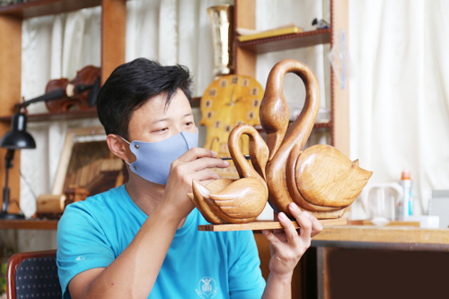 청력장애자 김승일은 바이올린 제작뿐아니라 국가망에 게재된 여러 공예품들을 연구한데 기초하여《백조를 형상한 다용도 필통》을 비롯한 목공예품들을 새롭게 창작하여 내놓았다.