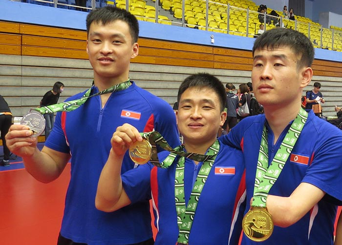 우리 나라와 인디아, 프랑스를 비롯한 10여개 나라와 지역에서 온 백수십명의 선수들이 참가하여 매우 치렬하게 진행된 이번 국제경기들에서 김영록, 박금진선수들은 금메달을 쟁취하여 온 나라 인민들에게 신심과 용기를 안겨주었다.