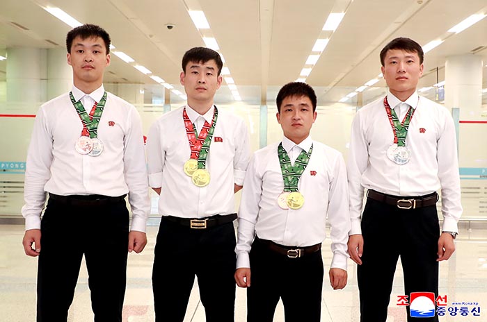 뜨거운 애국의 마음을 안고 세계의 하늘가에 우리의 국기를 높이 떠올린 미더운 장애자탁구선수들을 조국은 뜨겁게 맞아주었다.