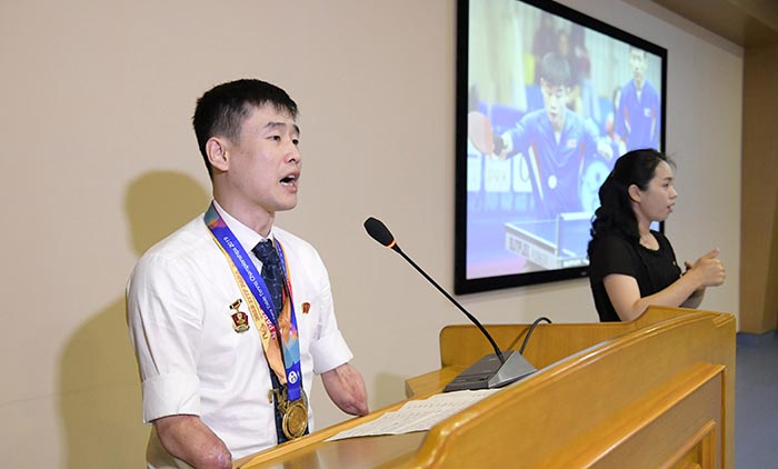 나날이 뜨거워지는 당의 배려에 천만분의 일이라도 보답하기 위해 오늘도 우리의 장애자들은 충성과 애국의 길을 쉬임없이 걷고있다.