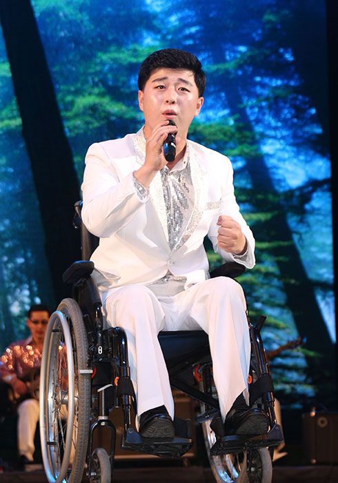 하기에 뜻밖의 일로 시력을 잃었어도 매일같이 페부로 스며드는 어머니당의 사랑을 날마다 절감하며 한 시력장애자청년이 장애자공연무대에서 심장으로 부른 노래 《당이여 나의 어머니이시여》가 만사람의 심금을 뜨겁게 울리게 되였던것이다.