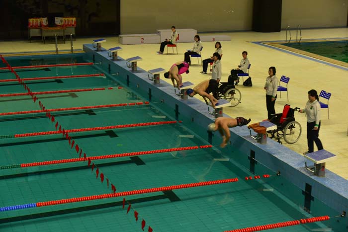 장애자들과 애호가 600여명이 참가한 이번 경기대회는 탁구, 정구, 헤염, 사격 등 여러 종목의 경기들로 나뉘여 치렬하게 벌어졌다.